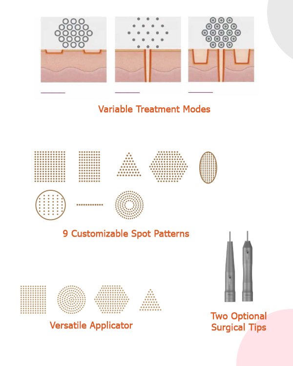 10600nm CO2 Laser (Deep Resurfacing): Targets the deeper dermal layers to provide intensive treatment for scar removal, significant skin tightening, and deep structural resurfacing.